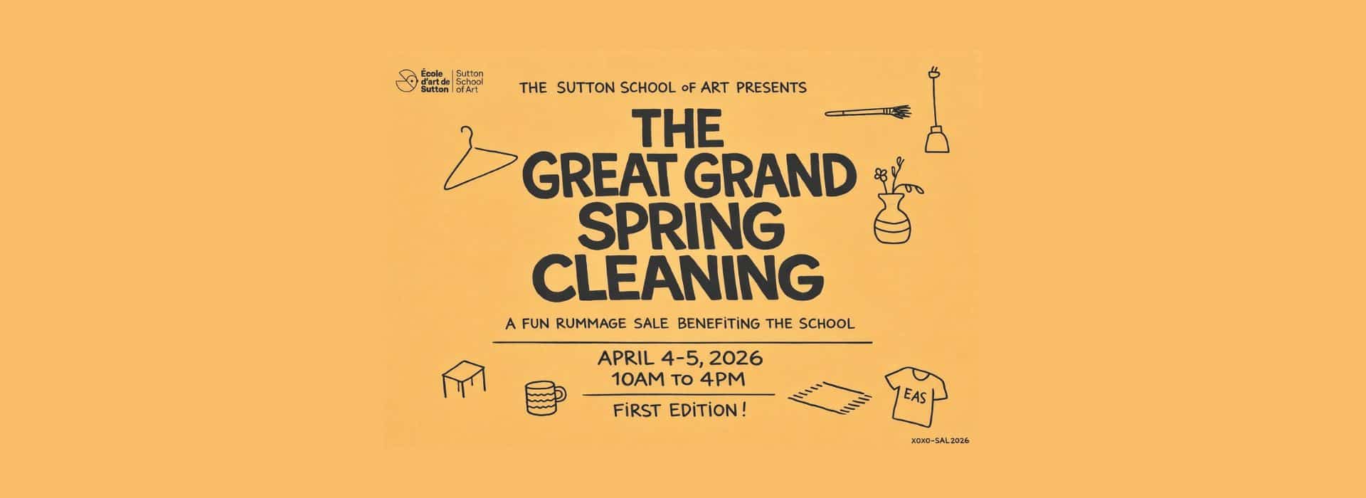 Join us on April 4 and 5, from 10 a.m. to 4 p.m., for our big garage sale at the École d'art de Sutton! Many items for sale to benefit the school, all in a festive atmosphere!